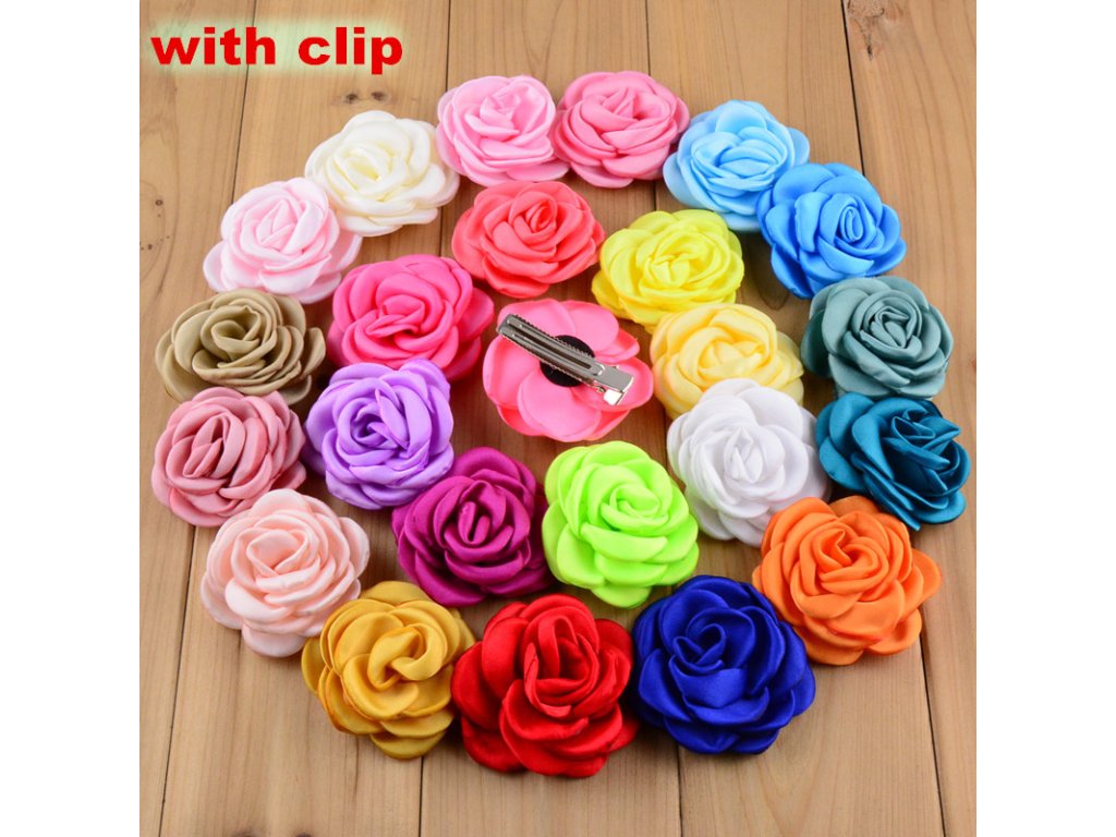 Jemná saténová kytička. Velká 6 cm. Velmi hustě řasená. Kovová spona moc dobře drží i jemné vlásky. Pro každou princeznu, na každý věk.
