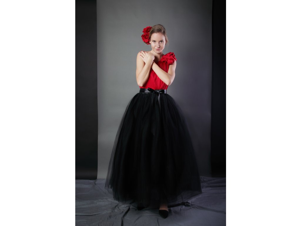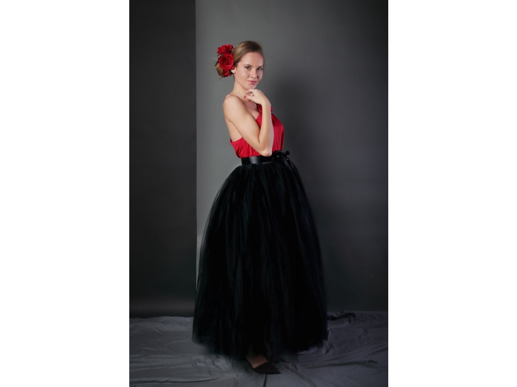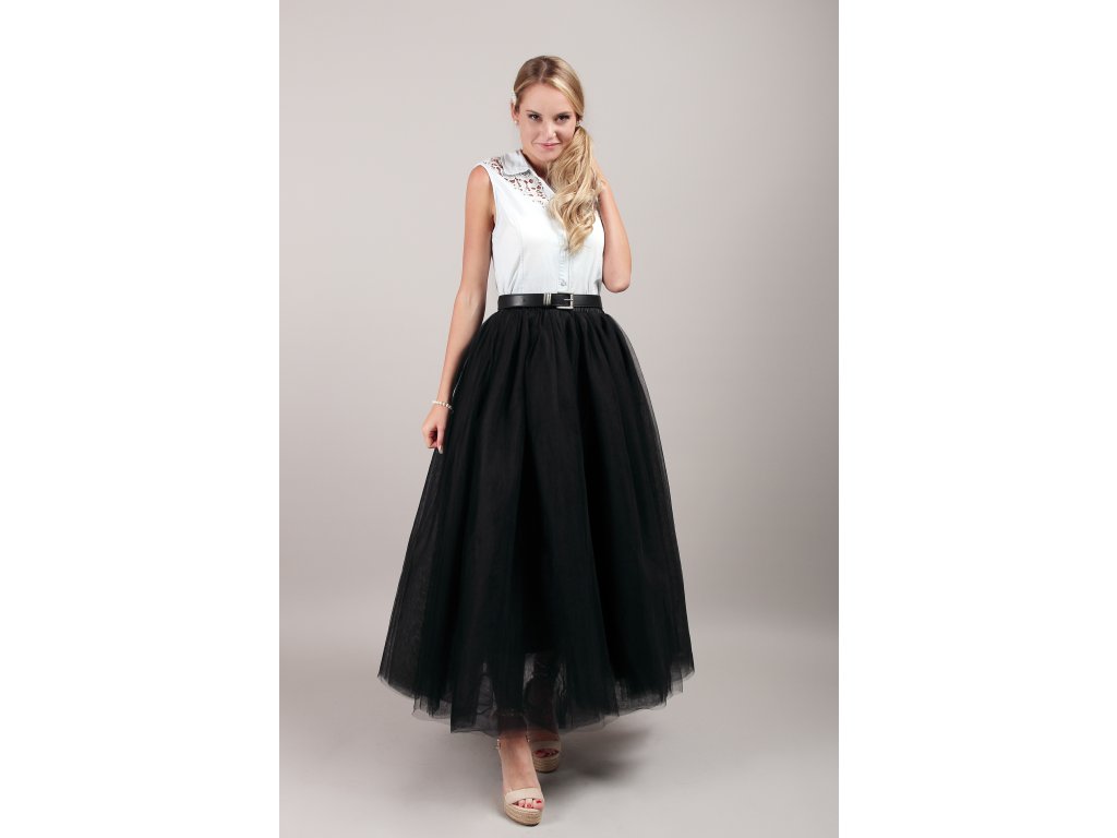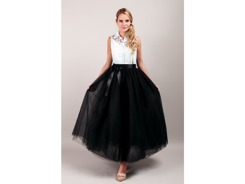 Tutu sukně tylová dámská maxi - černá - délka 100 cm - na plesy